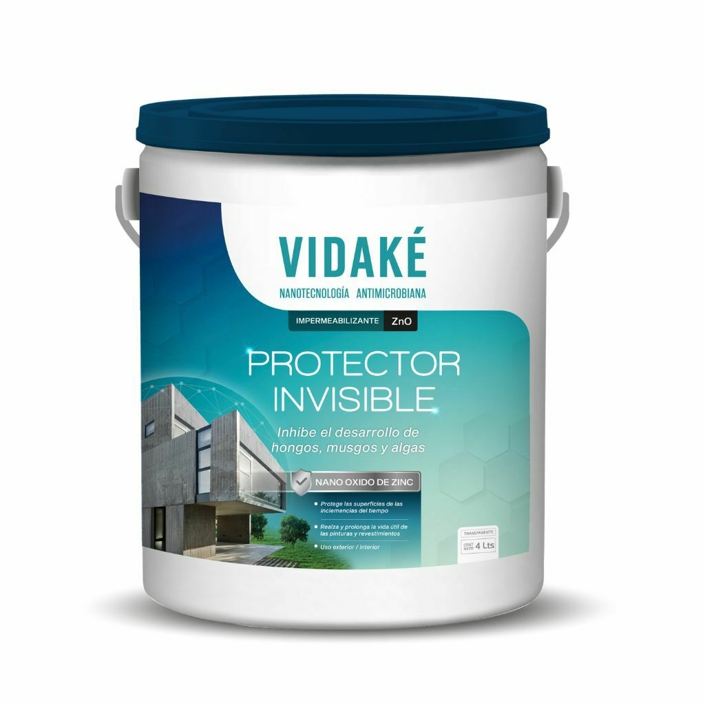 Recubrimiento transparente, nanotecnológico y antimicrobiano. Producto impermeabilizante formulado con resinas acrílicas base agua y nano óxido de Zinc (ZnO). Protege y realza las terminaciones exteriores e interiores. Forma una película protectora que actúa de filtro solar e inhibe la formación de hongos, musgos, líquenes y algas, reduciendo el deterioro de la superficie tratada. Una vez seco repele el agua. Para usar sobre paredes terminadas con pintura, revestimientos texturados, hormigón visto y ladrillo, entre otros, prolongando el buen estado y la vida útil de las superficies y recubrimientos.